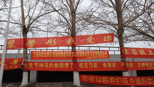 11月7日,记者在长春一家理工类高校校园内见到24条红色条幅,上写着“难忘初识回眸的笑靥 此刻你是最美的风景”、“今天,你是我们的沈佳宜”等温馨、搞笑标语。据了解,在这所学校里,男女生比例为7:1。所以在光棍节前夕,这所高校的“理工男”们自发组织创立了一个“女生节”。节日期间,女生们会收到各式各样的礼物,包括一份早餐、一封情书,甚至是有男生在宿舍楼下深情献歌。不过,这一切和恋爱没有关系,只是“理工男”们对女生们表达的一份祝福。