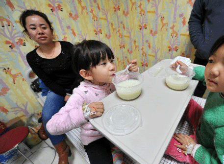 10月23日,在宁夏回族自治区人民医院,两名患儿在喝粥。当日,宁夏回族自治区银川市金凤区锦绣幼儿园发生疑似食物中毒事件,59名师生在早餐后出现嗜睡、头晕、口干症状,随后被送往医院救治。截至目前,收治的59名患者中除2名患儿尚有嗜睡症状外,其余患者神志清醒,体征平稳。事件发生原因正在进一步调查中。