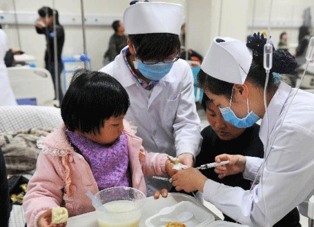 10月23日,在宁夏回族自治区人民医院,护士在给一位患儿打针输液。当日,宁夏回族自治区银川市金凤区锦绣幼儿园发生疑似食物中毒事件,59名师生在早餐后出现嗜睡、头晕、口干症状,随后被送往医院救治。截至目前,收治的59名患者中除2名患儿尚有嗜睡症状外,其余患者神志清醒,体征平稳。事件发生原因正在进一步调查中。