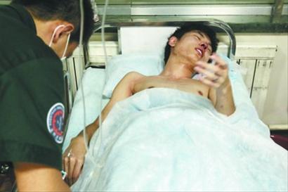 昨晚9时15分许,本报记者在沈阳市急救中心见到了郭俊,此时他原本满是鲜血的面部已经过医生的处理,但鼻子和嘴的周围还是异常红肿,嘴唇仍旧渗着血。