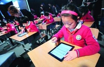 经过调查,嘉定区实验小学发现100多个小一生有iPad,学校遂开出了两个“苹果班”,一共90个学生。这两个班的学生可以用iPad上课,回答问题,回家做练习。