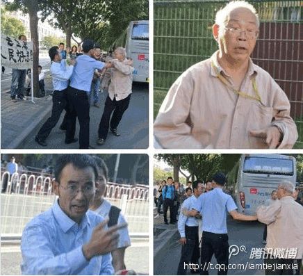 网爆北航教授韩德强9.18游行时打老人。网友供图