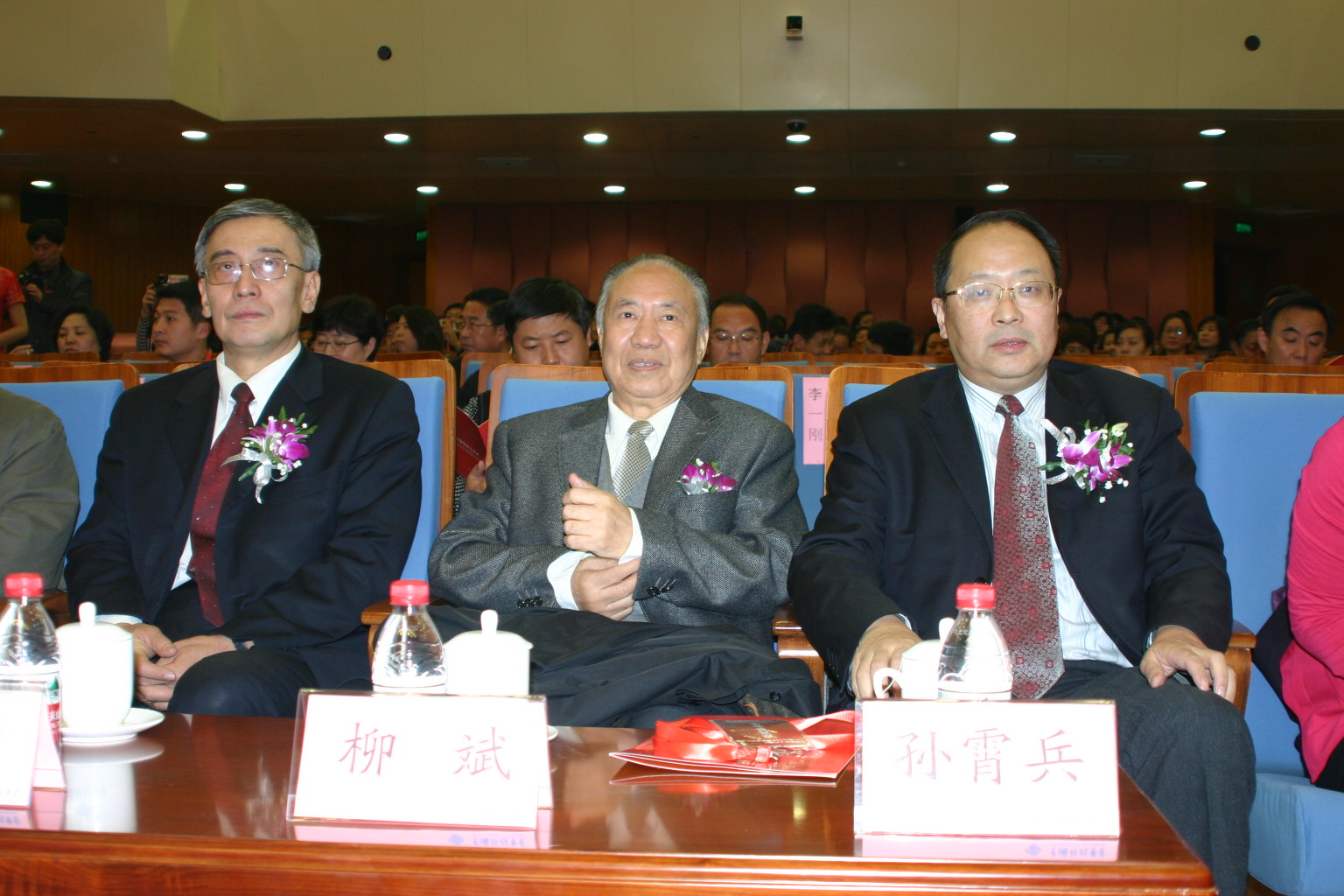 (左)国家教育研究发展中心主任 张力 (中)十届全国人大常委会委员、原国家教育委员会副主任、国家总督学 柳斌(右)教育部政策法规司司长 孙霄兵