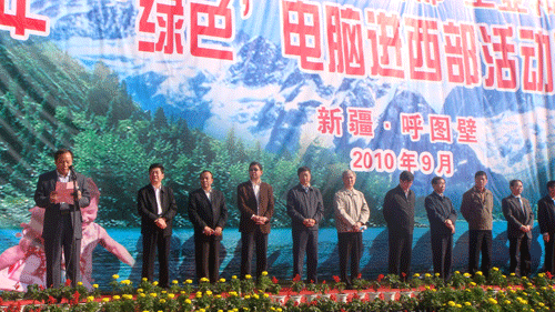 中央宣传部、文明委、教育部、工信部、文化部五部委2010年在呼图壁县第四中学举办绿色电脑进西部活动,陈金龙校长在会上发言