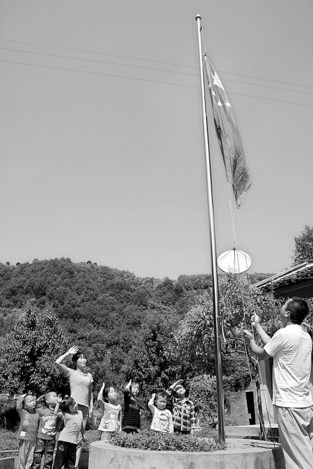 尽管只有7名学生,但鲁信鹏和妻子每周都会组织升国旗仪式