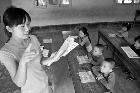 据鲁信鹏讲,近年来,随着村民外出务工和移民搬迁,村子里的学生越来越少。2010年“7·18”洪灾后,学校的学生人数更是直线减少。到今年这个学期,学校只剩下7名学生,年龄最大不到10岁,最小的仅有5岁。学校里几乎没有体育设施,孩子们的体育课只能玩玩单腿“斗鸡”或者是跳绳。每逢刮风下雨,鲁信鹏夫妇俩会将学生一个个送回家。在教学方面,他们根据学生的个性、特长和爱好因材施教,形成了教师乐教、学生好学的良好氛围。