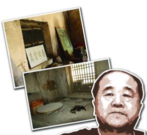 屋里很暗,一面采光,窗台上还压了几层砖头。屋里那人,对着破败的炕头拍照,用手抚摸着满是灰尘的木头柜子,对这座久无人居的破落老宅依依不舍。这是莫家的老宅,莫言在此出生成长,直到当兵才离开。