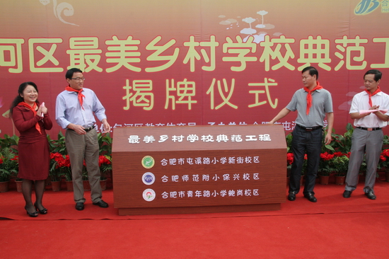9月4日,最美乡村学校典范工程揭牌仪式在屯溪路小学新街校区隆重举行。包河区最后三所乡村小学新街小学、鲍岗小学、保兴小学正式整体并入合肥市屯溪路小学、青年路小学和师范附小。城市名校整体接纳农村学校,这在合肥市尚属首例。从今天起,新街小学的孩子们就能像城里的孩子一样,在家门口也能上名校了。