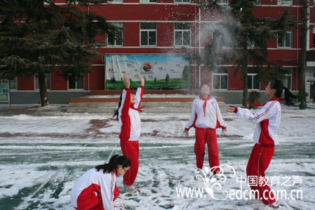 北京市丰台区第七中学把玩雪搞成了一种文化,搞成了一种活动,其细腻、精致、深入,充分体现了“让学生发现自己,绽放生命光彩”的办学理念。(孙晨)