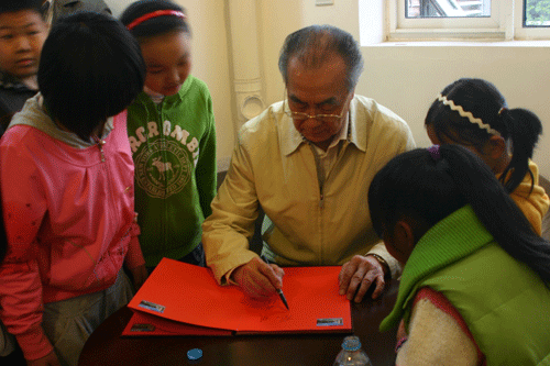 讲座结束后,方明老师还接见了他资助的一个学生,情切询问了她的学习和生活情况,并与她亲切合影;许多学生和家长纷纷找方明教授签字合影,方明教授不厌其烦的一一都满足了他们的要求。