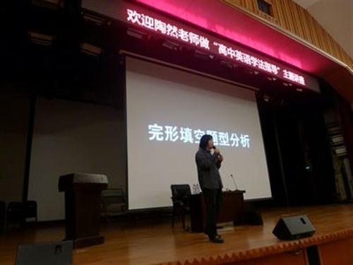 活动邀请了英国利兹大学社会学硕士陶然老师作主讲。讲座过程中,陶老师用逻辑严谨、见解独到的语言,对同学们高中的英语学习进行了有针对性的学法指导,他倡导学生对题目进行理性的客观的分析,从千变万化的高考题目中寻找内在的规律,该方法对高中英语知识的梳理发挥了积极的作用。