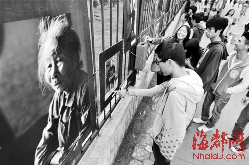 公益摄影展引来围观,很多学生都给依姆捐款献上一份爱心
