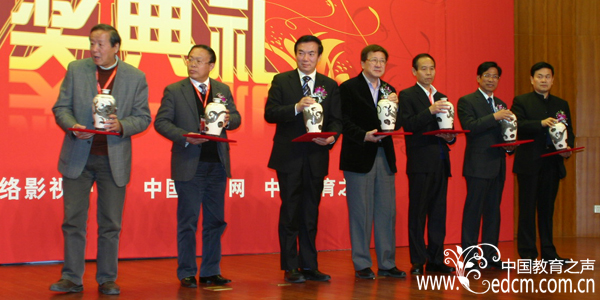 十届全国人大常委会委员、原国家教育委员会副主任、国家总督学柳斌为获得十大教育改革杰出人物的人员颁奖