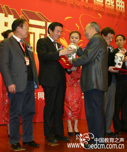 十届全国人大常委会委员、原国家教育委员会副主任、国家总督学柳斌为获得十大教育改革杰出人物的人员颁奖