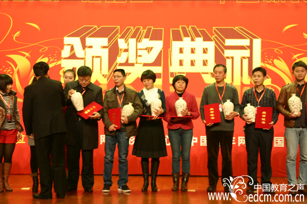中国青年网执行总编辑蔺玉红为获得百名卓越校长奖的校长颁奖
