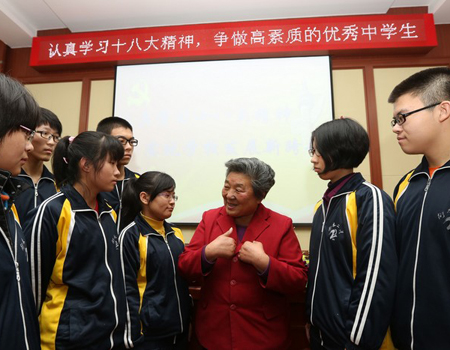 报告会结束后,部分学生围着林奶奶深入讨论学习十八大精神