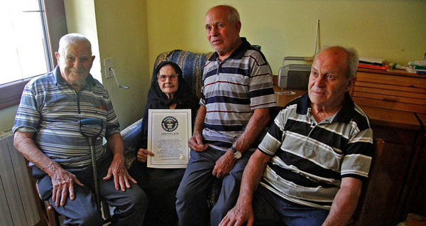 当地时间2012年8月21日,意大利Perdasdefogu,Consolata Melis(女)将在第二天度过105岁生日。Consolata Melis的家庭被吉尼斯纪录官方认证为“最老的家庭”,Consolata Melis共有9个兄弟姐妹,他们的年龄合计为818岁。