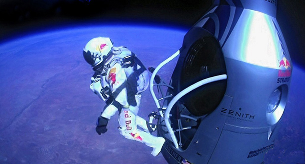 当地时间10月14日,美国,身穿特制宇航服的菲利克斯·鲍姆加特纳(Felix Baumgartner)从接近3.9万米的太空边缘跳伞,历时4分22秒最终平安降落到美国新墨西哥州的指定地点。