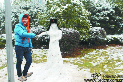 记者微访:博主曾志军,今年17岁,家住沌口东风大道,昨天下午,他在自家后面的院子里堆起了一座“女神”的雪人,耗时两个半小时。他说,看到下雪太高兴了,一时兴起,就模仿最近网上的一张热图“吊丝与女神”开始堆雪人,堆好后有一米多高,无论是“女神”的面容还是裙子,都惟妙惟肖。(翟兰兰)