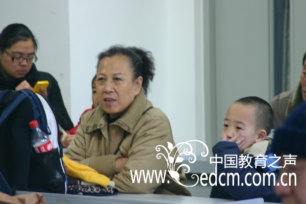 家长认真听工作人员介绍比赛规则和赛场秩序要求