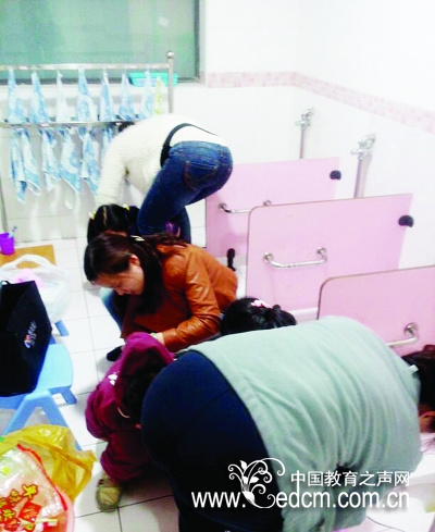 洗屁屁对孩子们来说是不可能完成的任务,老师只能一个个帮忙洗。