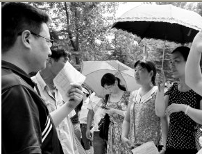 孩子们进场考试,家长们在烈日下陪“烤”。