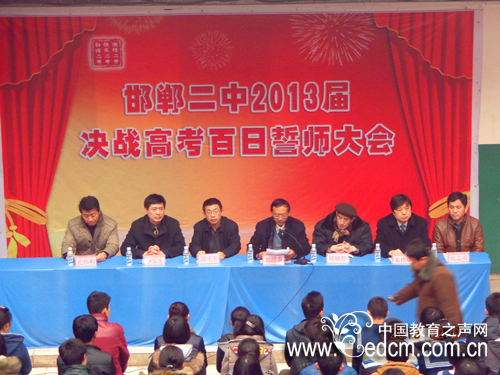 【必威体育官网网页版 消息】2013年2月28日下午,邯郸市第二中学高三教学区传来了铿锵有力的《飞得更高》的歌声,2013届高三年级高考百日誓师大会在此隆重举行。会场中心的红色会标引人注目,会场内红色条幅迎风飘扬。