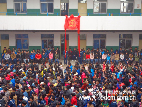 最激动人心的时刻到来了,在师生的热切注视下,郭培钢校长和武守玉主任揭下了倒计时牌上的大红色的绸缎,学生们爆发出了热烈的欢呼声!我们相信:高三学子们,百日策马闯雄关,六月扬眉夺桂冠;一腔热血,万丈豪情,二中定能创辉煌!