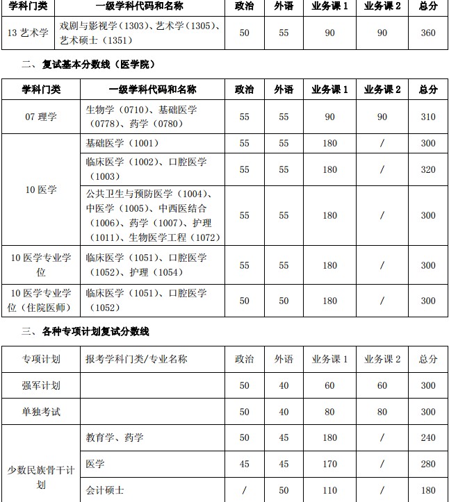 考研复试分数线