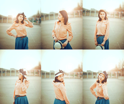 动态的抓拍,也就是你让妹子跑啊,跳啊,转圈啊,打滚啊,飞啊,然后你就一直连拍,总有一张你喜欢的,这个我觉得挺关键的,最自然的流露真情实感。这一些系列镜头可以组成一个画面来并用哦。