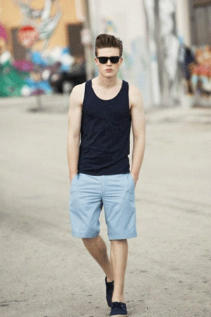 淡蓝色的裤子很难穿出质感,除非是瘦人搭配黑T和黑超。