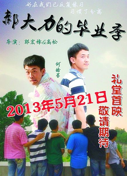 微电影《郝大力的毕业季》导演郭宏樟就是一位即将毕业的大四学生。他是河北经贸大学工商管理学院2009级学生,也是一位狂热的电影发烧友。 “毕业了,我们是不是可以考虑用一部微电影来表现大学四年的生活?”做完毕业论文,郭宏樟萌生了这样一个念头。他和好友高松、马亮等人一拍即合,三人开始筹划拍摄事宜。”