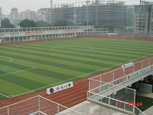 北京八中体育馆更是拥有超一流的设施,2008年被北京奥委会指定为游泳、蹦床训练馆,成为北京市唯一一所承担奥运会两个项目训练任务的中学。八中操场是市内中学唯一的架空操场,建有标准的400米田径场和标准人造草皮足球场,地下综合馆包括四个篮球场及一条130米*8米的地下跑廊。