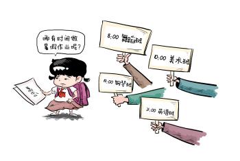 “我不想上辅导班,可我妈说只要我参加,就带我出去旅游。”在市内某辅导机构上课的小鹏说,他马上就要上初二了,开学前一周妈妈会带他去外地旅游,而前提是他要认认真真上完20天的数学培优课。“除了书面作业,我还要背诗词、练琴呢。”不少同学都表示,他们暑假没有多少时间玩,“不是在家里写作业,就是到外面上辅导班。”