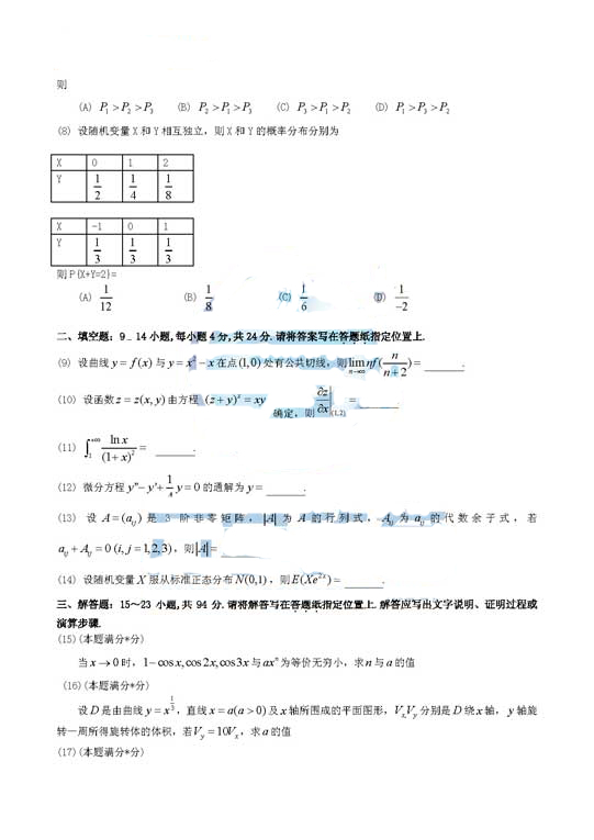 2013全国硕士研究生入学考试数学三试题及答案(完整版)