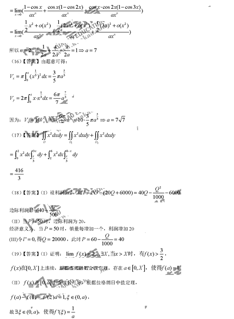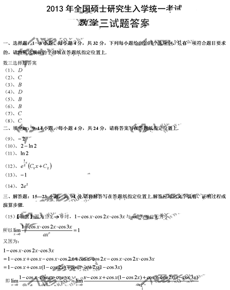 2013全国硕士研究生入学考试数学三试题及答案(完整版)