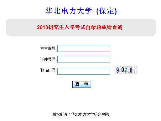 据华北电力大学(保定)获悉,2013考研初试自命题科目成绩予以公布,请考生自行登录本网站查询,不再另行通知。