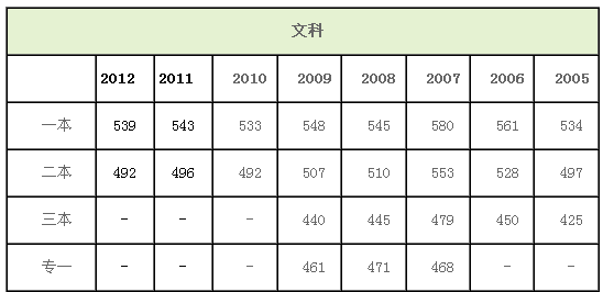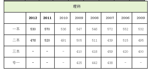 山西2007-2012年高考录取控制分数线汇总