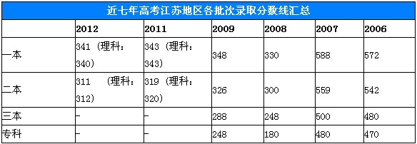 【必威体育官网网页版 消息】2013年高考大战即将开始,了解近几年所在地区的录取分数线对于高考志愿填报有着非常重要的参考价值,为帮助广大考生和家长更直观的了解近年各省市 的录取分数线情况,小编特将近七年(2006——2012年)各省市高考录取分数线进行汇总,供考生参考。以下是近七年高考江苏地区各批次录取分数线汇总: