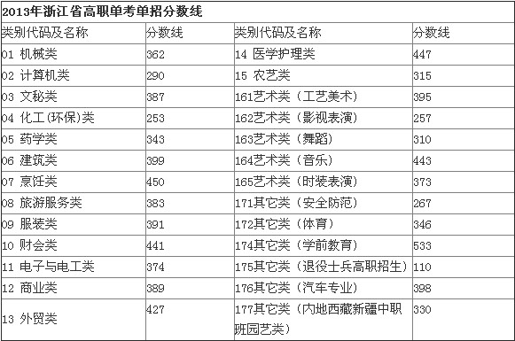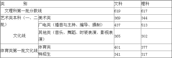 2013年浙江省普通高校招生文理科第一批、艺术体育本科分数线
