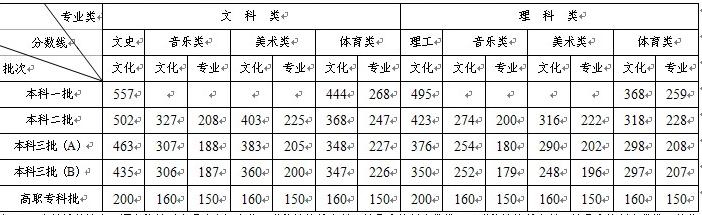 湖南2013高考分数线