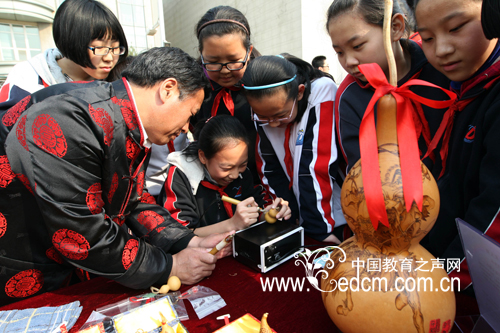 民间技艺大师在中学生传统文化校园日手把手教学生体验烙画制作