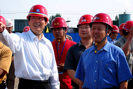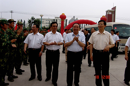 学校建设期间,自治区党委书记陈建国在教育厅蔡国英厅长的陪同下视察建设工地