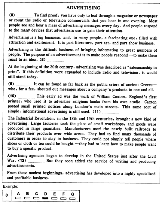G The first printed advertisement in the English language appeared in 1478, more than a century before Shakespeare's first play was produced.