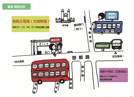 周颖画了一个月的时间,把到复旦的交通、校园内的主要建筑、网络、周边公交、住宿、美食、超市卖场、上海地铁图、上海部分景点、笔记、日历等实用信息都在这个20多页的小册子里一网打尽,“我尽量把简称写出来,比如本超,就是校本部的超市,这些简称,新生们一般要到校园里熟悉了一段时间后才能知道,如果刚到校园,是不了解的,问人也很少问到,假如提前把这些简称告诉他们,对于他们快速适应大学校园生活,非常有帮助。”周颖在介绍上海部分景点时,还作了特别提醒,比如博物馆不需要门票,中华艺术宫需要网上预约。
