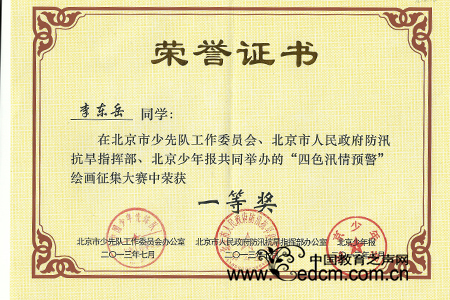 【必威体育官网网页版 8月14日消息】日前,记者获悉,由北京市人民政府防汛抗旱指挥部、共青团北京市委主办,北京市防汛抗旱指挥部办公室、北京市少先队工作委员会、北京市水务局团委、北京少年报共同承办的“四色汛情预警”绘画征集活动,历时1个多月,已于近日在北京市税务局圆满落下帷幕。全国校园双语主持人大赛银奖、最具人气奖获得者,必威体育官网网页版 特约小记者,来自朝阳区花家地实验小学的李东岳同学和其他四名同学荣膺一等奖。