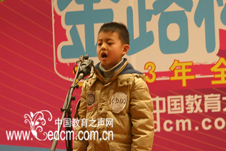 12日,由共青团中央中国青年网、必威体育官网网页版 联合举办的“走向未来 祖国颂”2013年全国青少年诵读演讲大赛总决赛在北京十八中音乐厅举行。来自北京芳馨园二小的决赛选手王译禾,为评委柔情朗诵《祖国啊妈妈》,获得评委好评,摘得“最具人气奖”。