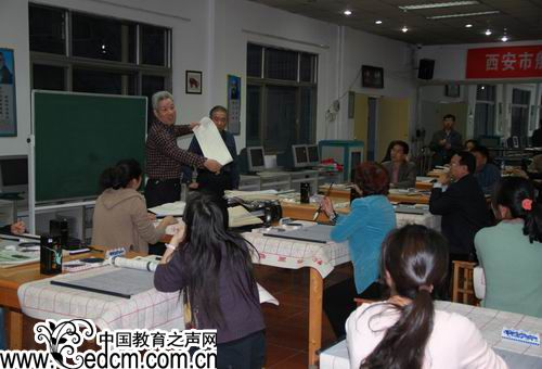2013年3月18日晚7点,航天中学教工书法学习(1)班的四十名学员开始了第一节课的学习。徐世锋校长也亲临书法课堂与大家一起认真学习。本节课的授课教师是已享誉航天系统及陕西文化书法界的芮德山老师。