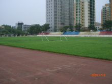 学校有塑胶篮球场5块、排球场3块;符合国际标准的400米塑胶跑道,跑道内为天然草皮足球场1块;室内、室外乒乓球台各6块;单杠、双杠、天梯、肋木等运动器械2组。