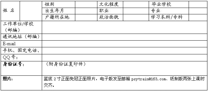 考生报名时需认真填写表中的各项内容,并交来身份证复印件、三张2寸蓝色背景的正面彩色照片